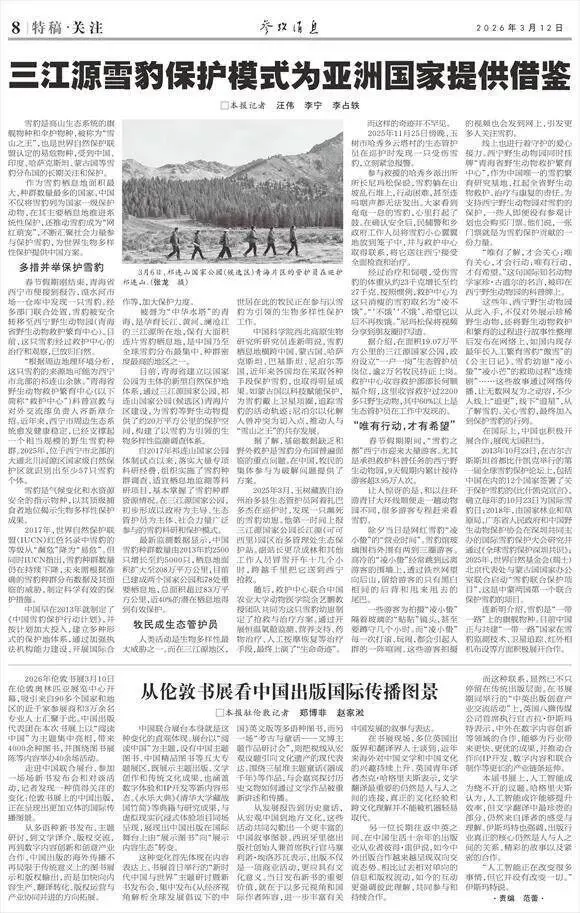 作为雪豹栖息地面积最大、种群数量最多的国家,中国不仅将雪豹列为国家一级保护动物,在其主要栖息地推进系统性保护,还推动雪豹成为“网红萌宠”,不断汇聚社会力量参与保护雪豹,为世界生物多样性保护提供中国方案。