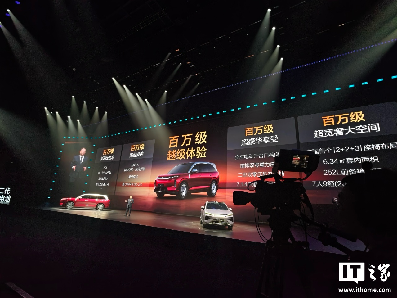 根据比亚迪王朝销售事业部总经理路天介绍,新车能够“撑起远大前程”,也能“装下全家幸福”。新车搭载“最强闪充”,和客户通一个电话、刷一条行业资讯的时间,就能满电出发。新车搭载第二代刀片电池,纯电续航可达 950 公里,系大型 SUV 全球第一。