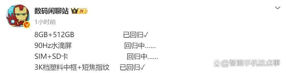 现在塑料中框和短焦指纹要回归,意味着厂商觉得这个配置够用了,没必要再往上堆。